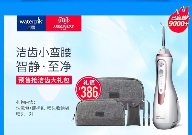 美牙器首小時(shí)增長(zhǎng)1862%。主打潔牙的潔碧海外旗艦店,5分鐘成交超去年全天,首小時(shí)成交超10000臺(tái),其中潔碧小蠻腰沖牙器售罄7600臺(tái)。