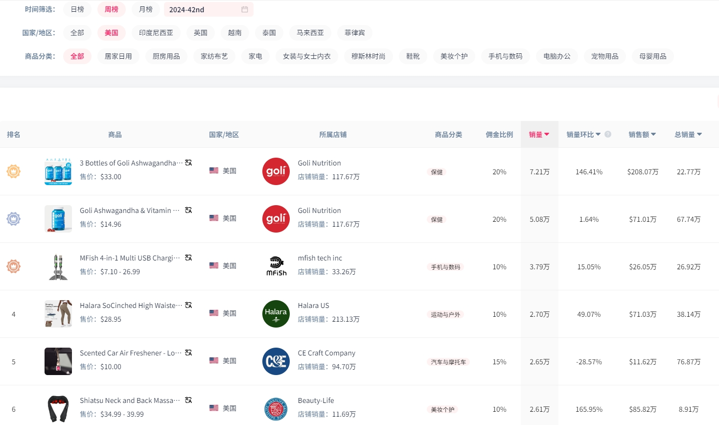 日前,一款電動(dòng)按摩儀沖上美國(guó)熱銷商品榜單前列,并且銷量還呈現(xiàn)上漲的趨勢(shì)。詳細(xì)來(lái)看,該按摩儀在今年1月中旬上線,在近一周中,其銷量增長(zhǎng)了165.95%,而在過(guò)去28天中,該產(chǎn)品在美國(guó)的美妝個(gè)護(hù)、個(gè)護(hù)電器、按摩器類目銷量榜中排行第一,售出了6.45萬(wàn)件。