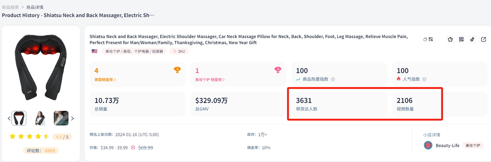 按摩儀銷量增長(zhǎng) 圖源:Fastmoss