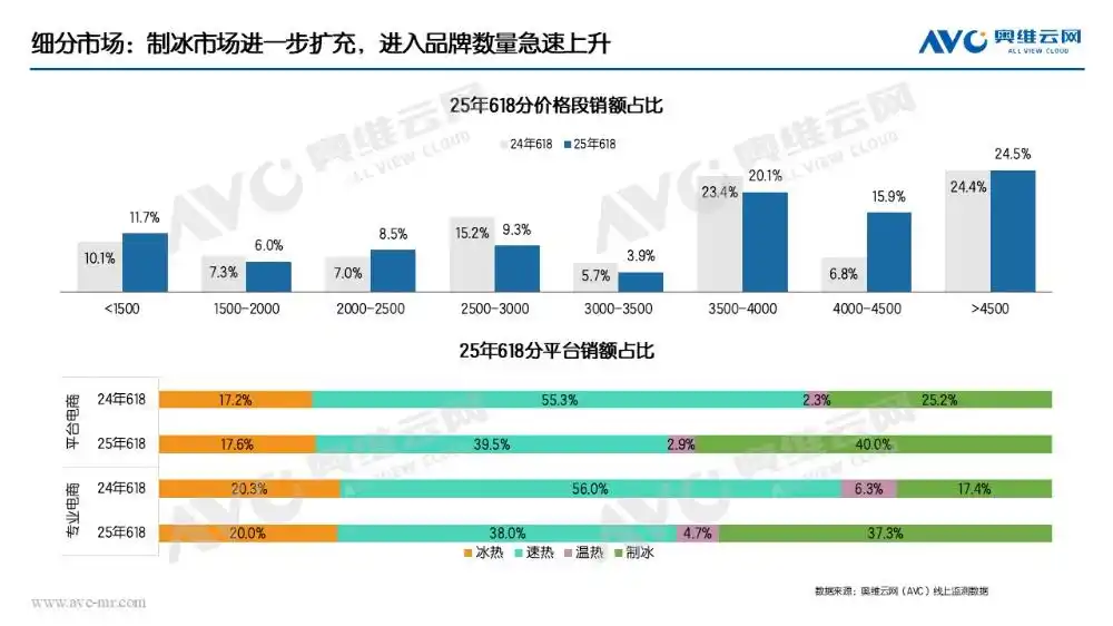 受國家補(bǔ)貼政策及創(chuàng)新功能驅(qū)動(dòng),2025年618期間凈飲機(jī)行業(yè)增長勢(shì)頭顯著。其中,制冰凈飲機(jī)成為市場新寵,市場份額快速提升,強(qiáng)勁拉動(dòng)中高端價(jià)格段產(chǎn)品的銷售增長。消費(fèi)者對(duì)凈飲機(jī)的需求已不再局限于單純的飲水功能,集制冰、加熱、凈化等多種功能于一體的復(fù)合型產(chǎn)品,正成為市場主流選擇。