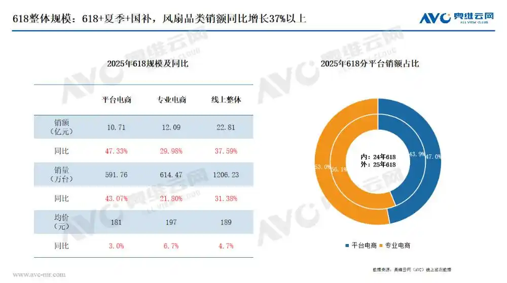 電風(fēng)扇 在618購物促銷活動(dòng)、夏季高溫催生的旺盛需求,以及國家補(bǔ)貼政策的三重利好驅(qū)動(dòng)下,電風(fēng)扇品類迎來銷售熱潮。線上監(jiān)測數(shù)據(jù)顯示,電風(fēng)扇銷額一舉突破22.8億,同比增幅超37%。